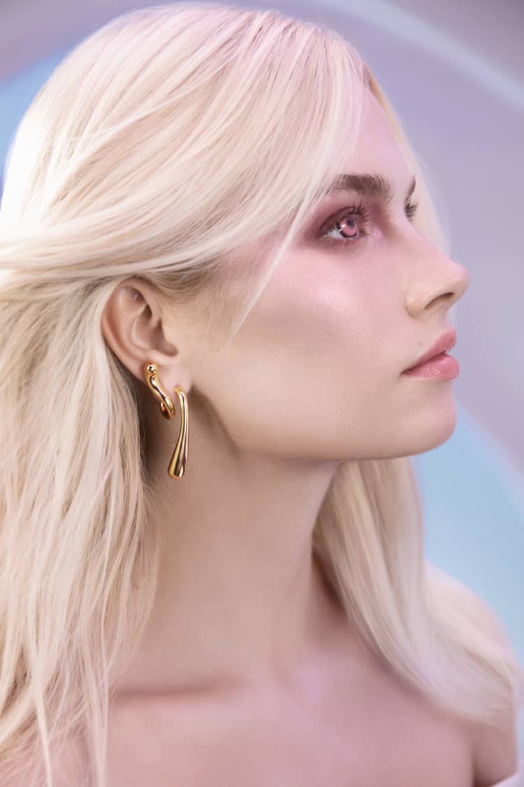 Collares, pulseras, anillos, pendientes y earcuffs chapados en oro de 24 k y rodio, elaborados con metales reciclados, diseñados en movimiento para activar la energía del amor.