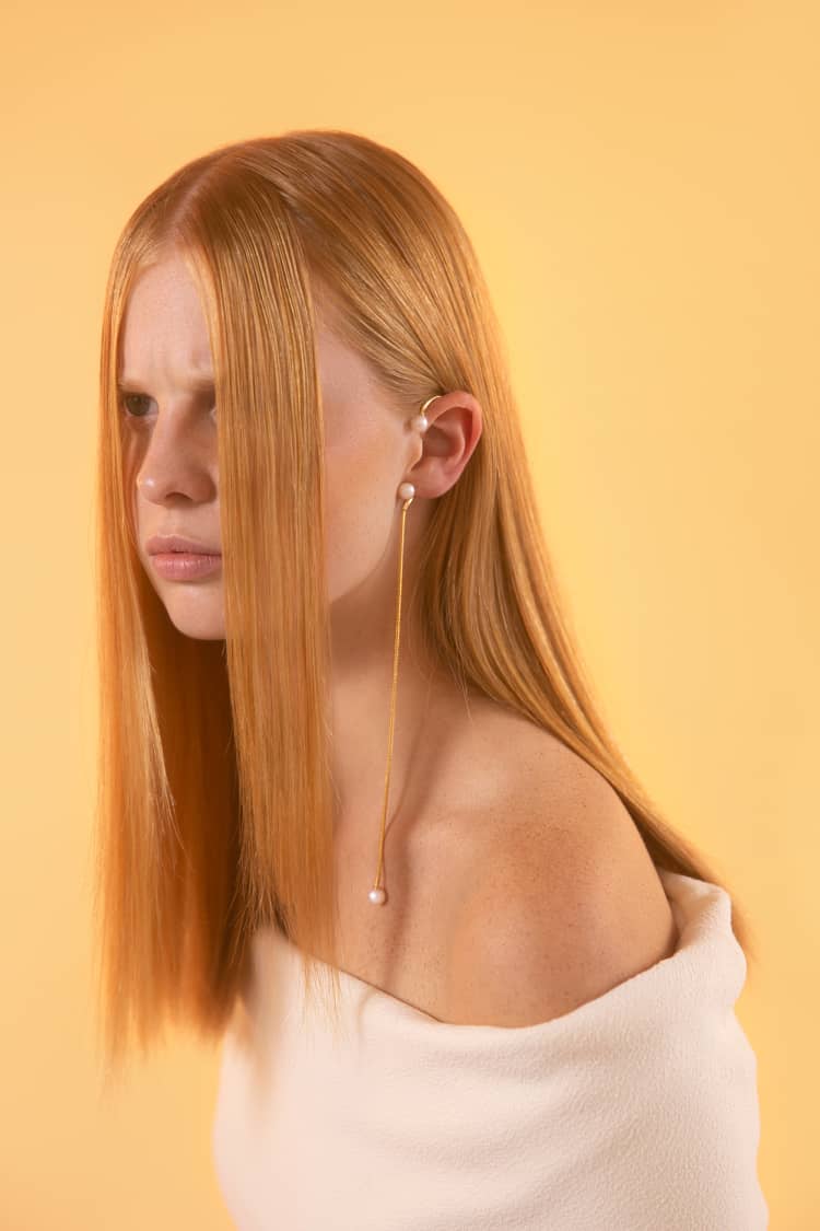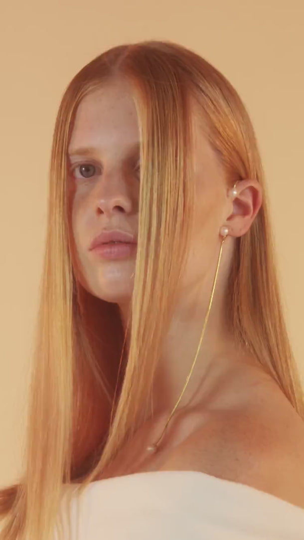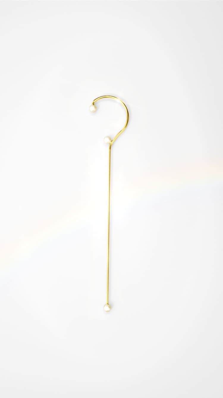 Ear cuff de serpiente con perla y cadena