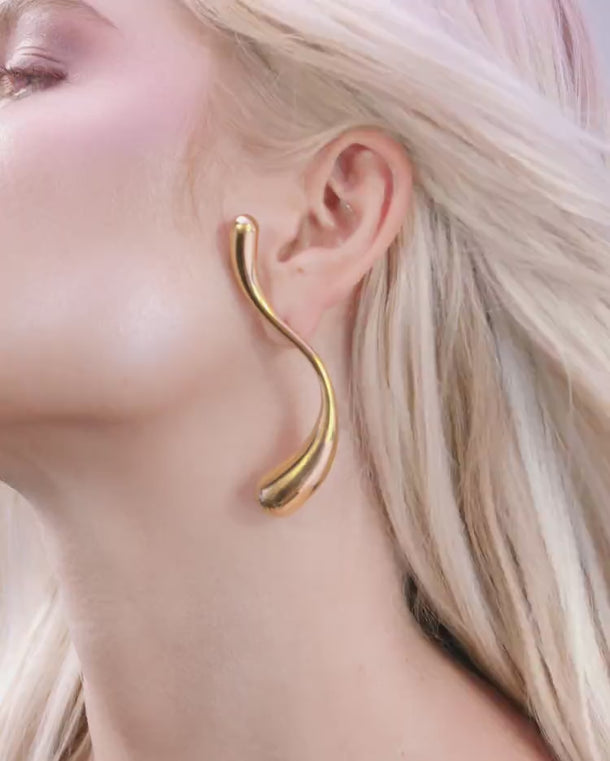 Pendientes Drop en Forma de S Grandes - Oro