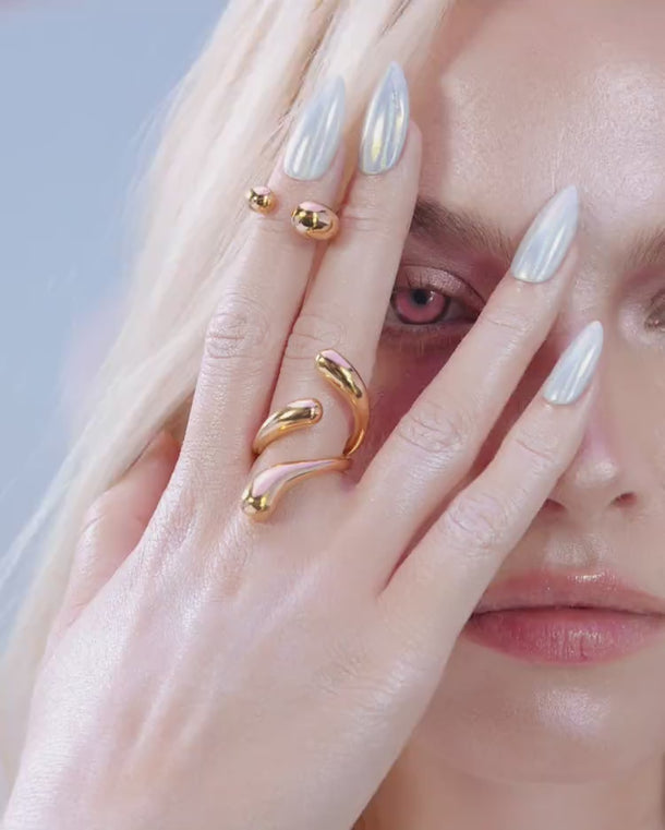 Descubre el elegante Anillo Tres Drops - Oro: joyería fina con diseño moderno de tres esferas, acabado en oro brillante. Perfecto para realzar cualquier look sofisticado.