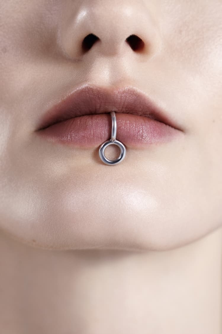 Joya de labio tipo cuff redondeada de plata