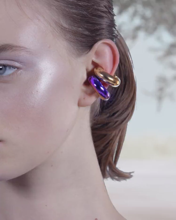 Descubre el Ear cuff grueso holográfico: joya moderna de brillo arcoíris, ajustable y sin perforación. Añade estilo futurista a tus looks diarios.