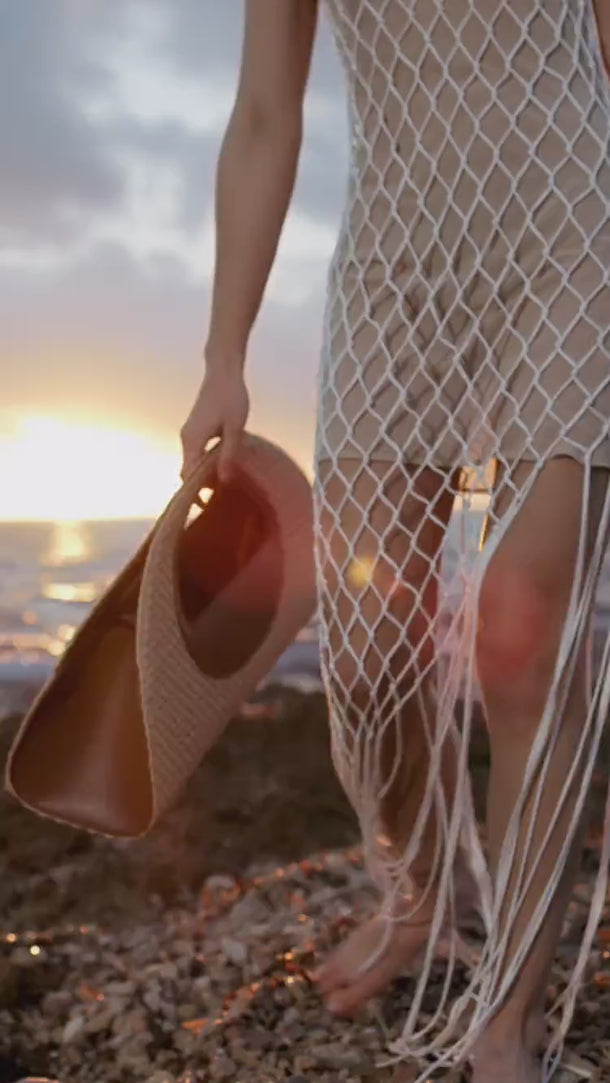 Mediterranean accessories made with natural raffia are a summer staple. Because of their freshness, lightness and versatility, they are ideal for moving between the beach and the city. The hand-woven natural raffia basket with vegetable-dyed leather details can be used in different ways, adapting it to your summer routines.