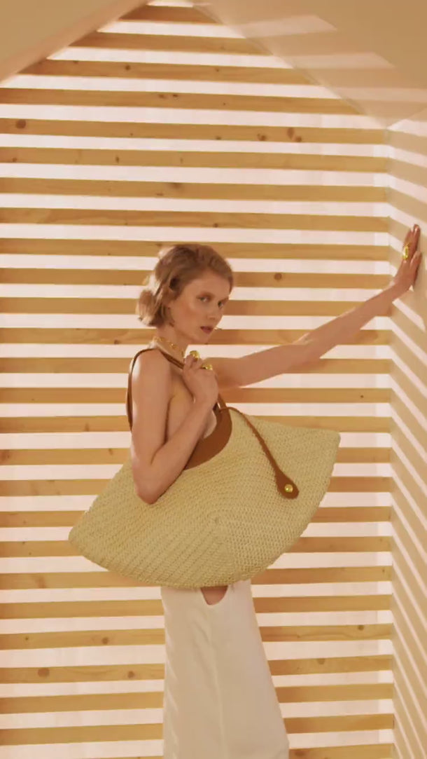 Mediterranean accessories made with natural raffia are a summer staple. Because of their freshness, lightness and versatility, they are ideal for moving between the beach and the city. The hand-woven natural raffia basket with vegetable-dyed leather details can be used in different ways, adapting it to your summer routines.
