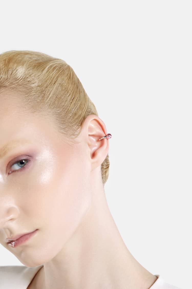 Descubre el Ear Cuff Huggie Casa Batlló en plata y baño rosa: joyería moderna inspirada en Gaudí, cómoda, ajustable y perfecta para cualquier look.